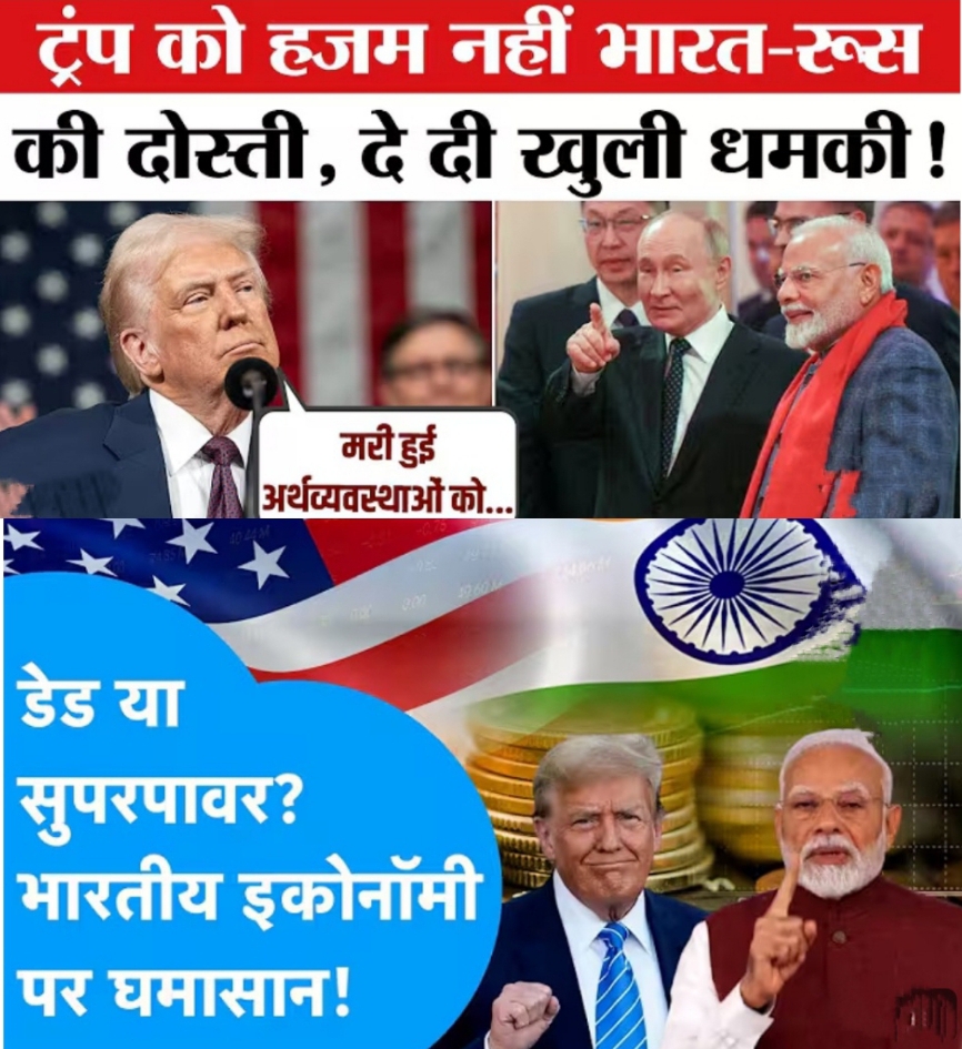 साथियों बात अगर हम ट्रंप द्वारा भारतीय इकोनॉमी को डेड कहना व इसके एनकाउंटर में हमारे तथ्यों की करें तो,ट्रंप का यह पोस्ट भारत पर 25 फीसदी टैरिफ ऐलान के बाद आया है। ट्रंप ने अपनी पोस्ट में लिखा, ‘मुझे इस बात की परवाह नहीं है कि भारत रूस के साथ क्या-क्या करता है, लेकिन वे दोनों मिलकर अपनी ‘डेड इकोनॉमी’ को और नीचे गिरा सकते हैं। अमेरिकी एक्सपर्ट डेलरिम्पल ने गुरुवार को कहा कि वास्तव में भारत की अर्थव्यवस्था ‘डेड’ होने से कोसों दूर है,बल्कि पिछले साल अमेरिका की तुलना में दोगुनी तेजी से बढ़ी है और इस साल अमेरिका की तुलना में तीन गुना तेजी से बढ़ने का अनुमान है, इंटरनेशनल मॉनेटरी फंड के नए वर्ल्ड इकोनॉमिक आंकड़ा डेलरिम्पल की बातों को सपोर्ट करता है।आईएमफ के मुताबिक, भारत की अर्थव्यवस्था 2025 और 2026 दोनों में 6.4 पेर्सेंट की दर से बढ़ने का अनुमान है,जबकि अमेरिका की इकोनॉमी ग्रोथ 1.9 पेर्सेंट और 2 पेर्सेंट रहने का अनुमान है। कैलेंडर वर्ष के दौरान भारत के 2025 में 6.7 पेर्सेंट की ग्रोथ होने का अनुमान है। आईएमफ के अनुसंधान विभाग के प्रमुख डेनिज इगन ने हाल ही में एक प्रेस कॉन्फ्रेंस के दौरान कहा कि वास्तव में हमारी ग्रोथ दर काफी स्थिर है। संशोधित भारतीय अनुमानों में अप्रैल के अपडेट की तुलना में 2025 के लिए 0.2 प्रतिशत अंकों की ग्रोथ और 2026 के लिए 0.1 प्रतिशत अंकों की ग्रोथ दर्ज की गई है। इसके विपरीत ग्लोबल अर्थव्यवस्था के 2025 के दौरान 3 पेर्सेंट की रेट से बढ़ने का अनुमान है, जबकि अमेरिका समेत विकसित अर्थव्यवस्थाओं की ग्रोथ रेट 2 फीसदी से नीचे रहने का अनुमान है,चीन की ग्रोथ रेट 4.8 फीसदी रहने का अनुमान है। गौरतलब है कि बुधवार को ट्रंप ने भारत से आयात पर आने वाली सभी वस्तुओ पर 25 पर्सेंट टैरिफ लगाने की घोषणा की थी, साथ ही रूसी कच्चे तेल और सैन्य उपकरणों की खरीद पर नराजगी जाहिर करते हुए जुर्माना लागने की बात कही, ट्रंप ने कहा, ‘भारत में किसी भी देश की तुलना में सबसे कठोर और अप्रिय गैर-मौद्रिक व्यापार अवरोध हैं.’ उन्होंने भारत के टैरिफ को दुनियाँ में सबसे ज्यादा बताया है।