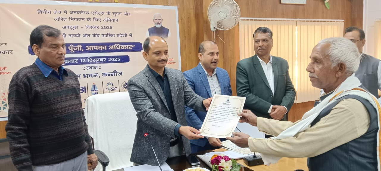कन्नौज। भारत सरकार के महत्वाकांक्षी “आपकी पूँजी–आपका अधिकार” अभियान के तहत आज विकास भवन स्थित हर्षवर्धन सभागार में एक व्यापक जागरूकता शिविर का आयोजन किया गया। शिविर में जिले के विभिन्न बैंकों, बीमा कंपनियों, म्यूचुअल फंड संस्थानों, एनबीएफसी तथा अन्य वित्तीय संस्थानों के अधिकारी एवं कर्मचारी बड़े पैमाने पर उपस्थित रहे। कार्यक्रम का उद्देश्य वर्षों से निष्क्रिय पड़े बैंक खाते, बीमा दावे, म्यूचुअल फंड यूनिट्स, पीएफ एवं अन्य वित्तीय परिसंपत्तियों की वास्तविक आधिकारिक दावेदार की पहचान कर उन्हें उनकी अपनी पूंजी पुनः लौटाना था।